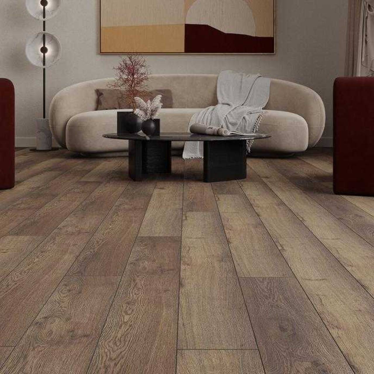 Ламинат Kastamonu Nanoclick Габбро NC33CV-67 – это надежное и долговечное ламинированное покрытие. 33 класс применения позволяет укладывать ламинат как в жилых, так и в коммерческих помещениях с высокой проходимостью. Планка производится в узком формате 1380*159 мм, ее толщина составляет 10 мм. В коллекции представлены декоры под натуральные породы дерева, которые впишутся практически в любой дизайн интерьера. Ламинат не требует специального ухода, легко моется, устойчив к воздействию УФ-лучей. Допускается укладка покрытия вместе с теплым полом. Производство коллекции осуществляется в России. Максимальный срок службы составляет 25 лет.