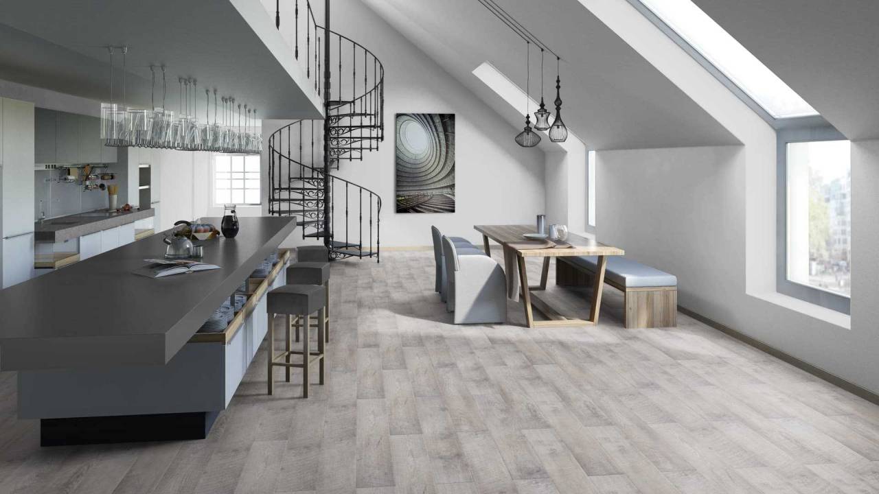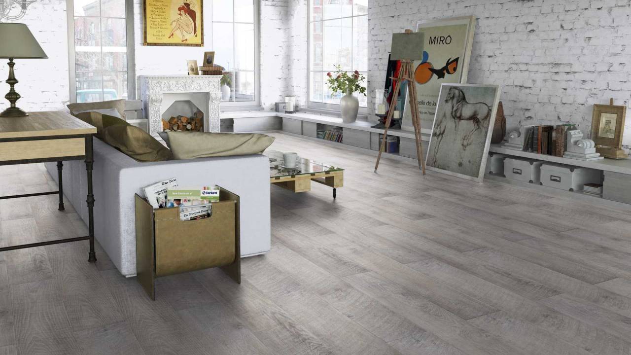 Трендовый Ламинат Tarkett Cinema Мерлин арт-винтажного стиля. Грубое тиснение, одновременное использование матовой и хромированной поверхности, необычайный эффект ручной обработки дерева и создание эффекта оптической фаски на доске.Внешнее сходство со штучным паркетом обеспечивается за счет четырехсторонней фаски – каждый край доски скошен и окрашен, что придает визуальную глубину. Тиснение в регистре точно воспроизводит структуру натурального дерева, строго следуя его рисунку по всей планке.Ламинат Tarkett Cinema принадлежит к разряду прочных покрытий 32 класса износостойкости. Ламинированная поверхность специально усилена и не подвергается деформации. Покрытие устойчиво к воздействию ультрафиолетовых лучей и отлично переносит динамические нагрузки. Для создания данного вида ламинированного пола применяется мощная влагостойкая панель HDF, которая позволяет использовать его даже для системы теплых полов. Наличие цельно вырезанных замков делает монтаж не только простым и удобным делом, но способствует длительной эксплуатации покрытия. Надежное замковое соединение TC-Lock снижает до минимума вероятность расхождения ламелей и появления щелей. Поверхность замка также обрабатывается мастикой Tech3S для повышения влагостойкости.