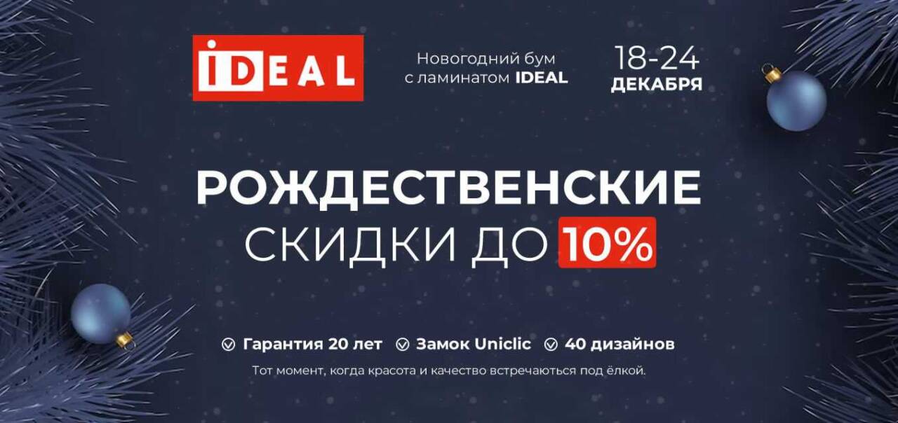 C 18 по 24 декабря проходит неделя рождественских скидок на ламинат Ideal!